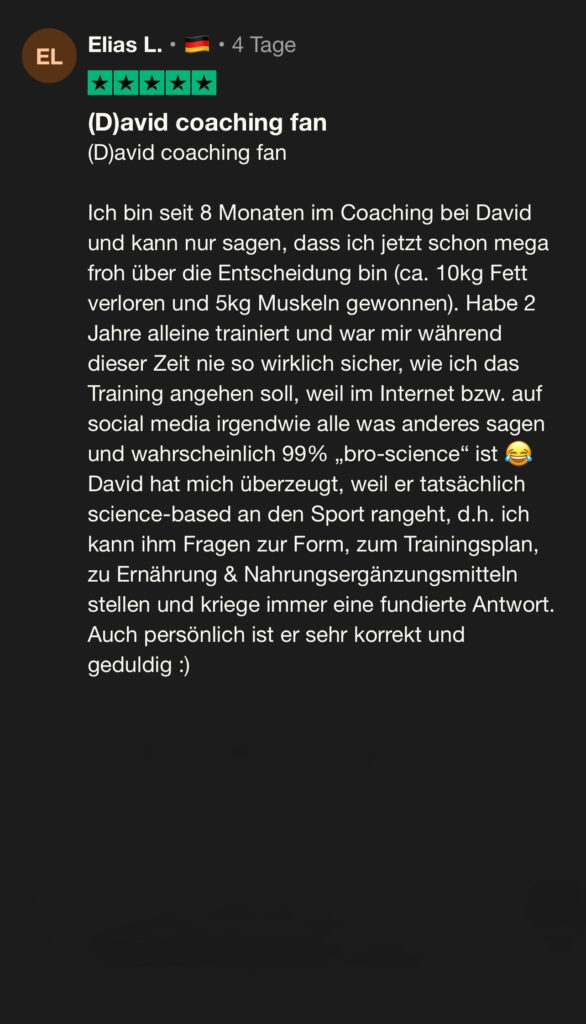 Jahrelang habe ich trainiert, ohne wirklich sichtbare Ergebnisse. Jeder “Experte” behauptete etwas anderes. Eine Flut an Mythen, Marketing und falschen Versprechen. Über 10 Jahre habe ich getestet, gefiltert und mich weitergebildet, bis ich all mein Wissen zu meinem 3-Phasen-System für nachhaltige Körpertransformation zusammensetzen konnte.